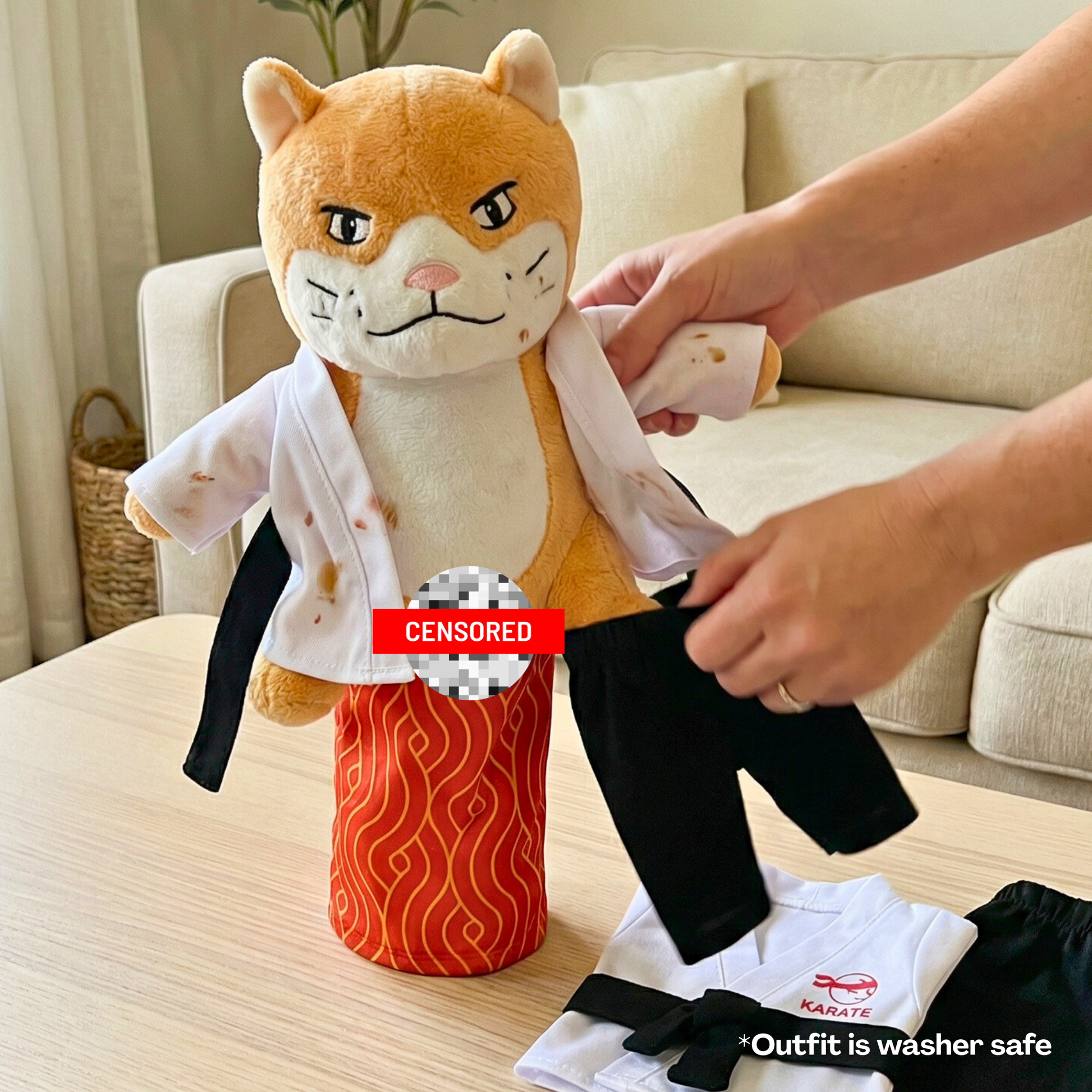 You don't always have to use Karate Kitty as a puppet. Let your cat cozy up with Karate Kitty when the match is over.